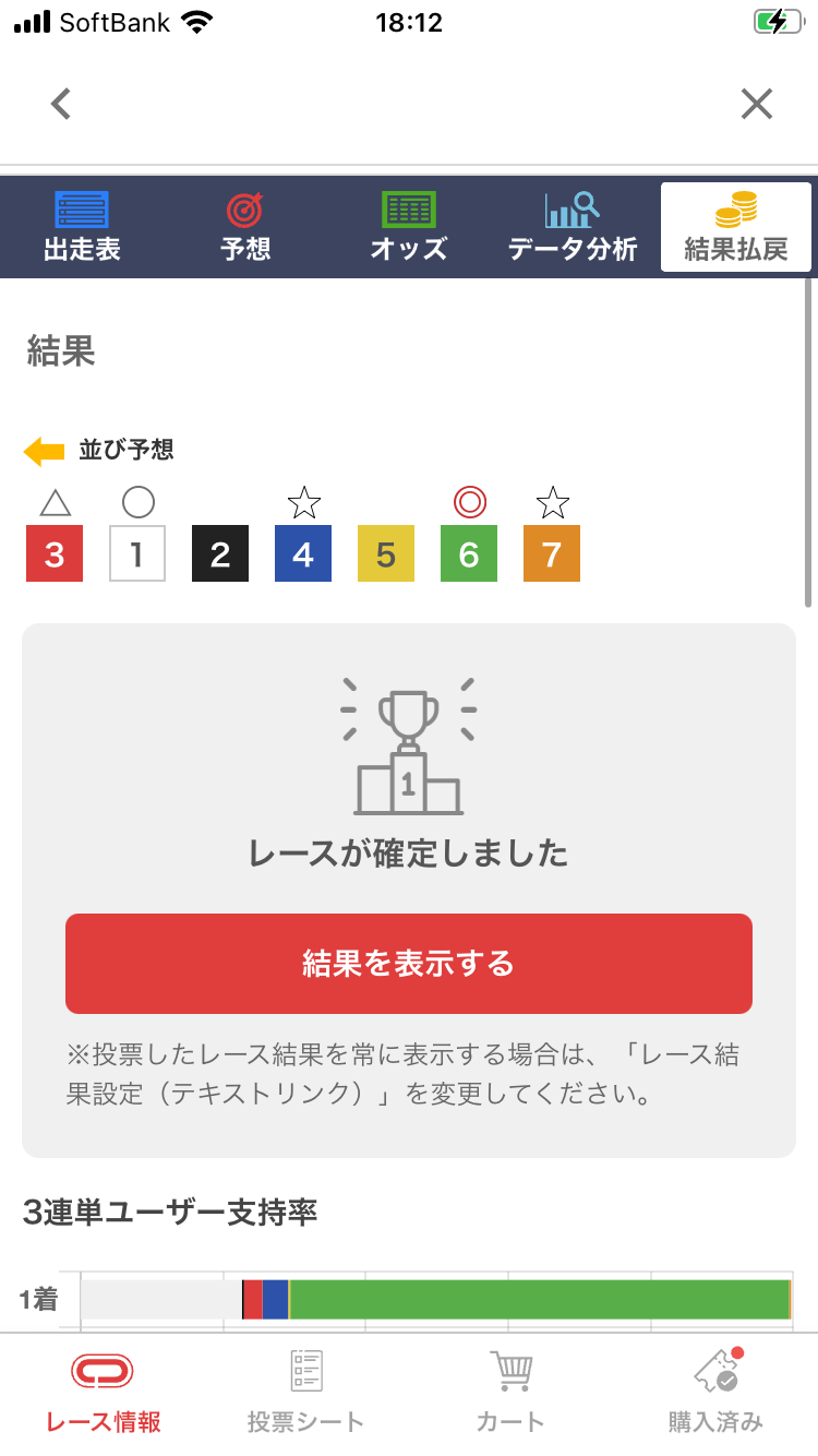 レース結果のネタバレを防ぐために、結果を隠せる機能を追加しました。
