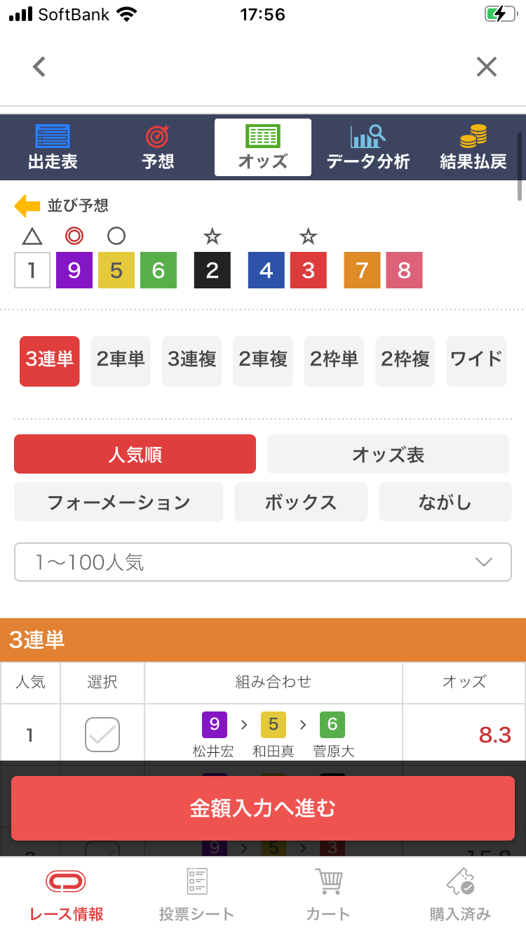 出走表とオッズページを行き来せずに、オッズ確認と並び情報の両方をチェックできるようになり、