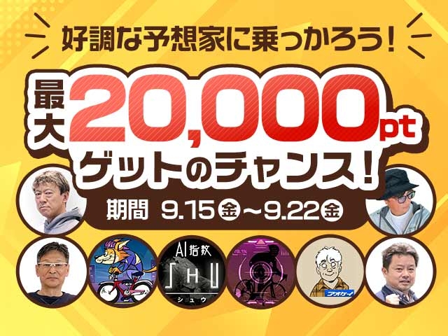 9/15(金)から自動番組による難解レースが多い共同通信社杯が開催!難解なレースは是非ウマい車券をご利用いただきたく、開催から1週間ウマい車券では好調のプロ予想家の予想に乗っかることでポイントがもらえる可能性がある
