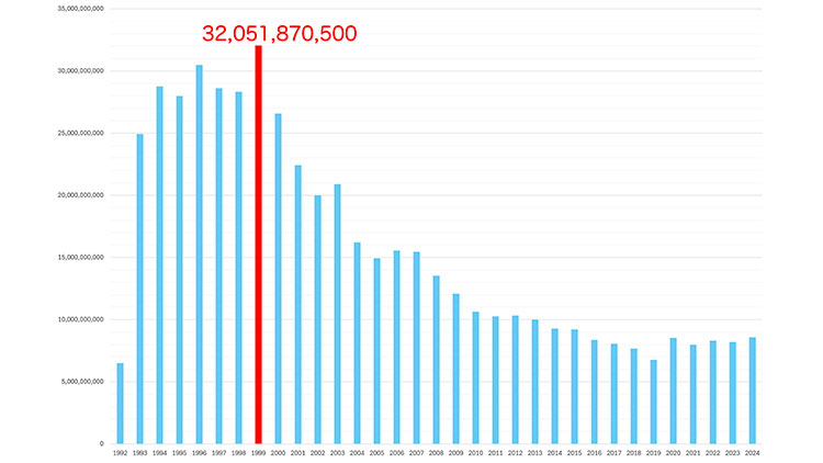 1992年前橋で開催し、今年で34回目を迎える寛仁親王牌・世界選手権記念トーナメント。この33年間で車券売上はどのように推移してきたのか? そして、最も熱狂に包まれた年はいつだったのか? 過去のデータをひも解きながら、その軌跡を振り返ります!
