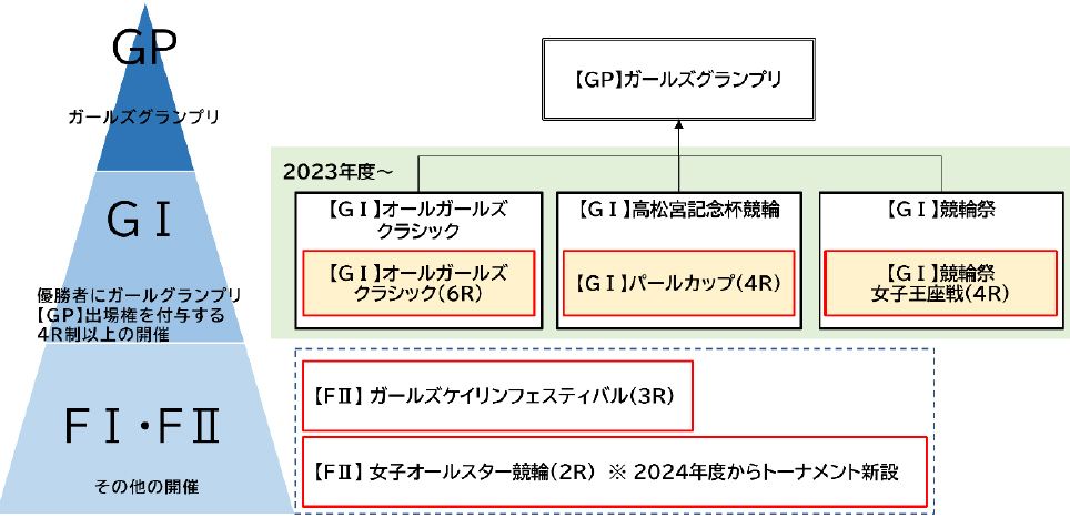 その一環としてレース体系が再構築され、新たにG1トーナメントが創設。「ガールズグランプリ(GP)」に加え、「パールカップ」「オールガールズクラシック」「競輪祭女子王座戦」の3大会がG1格付けレースとして新設されました。