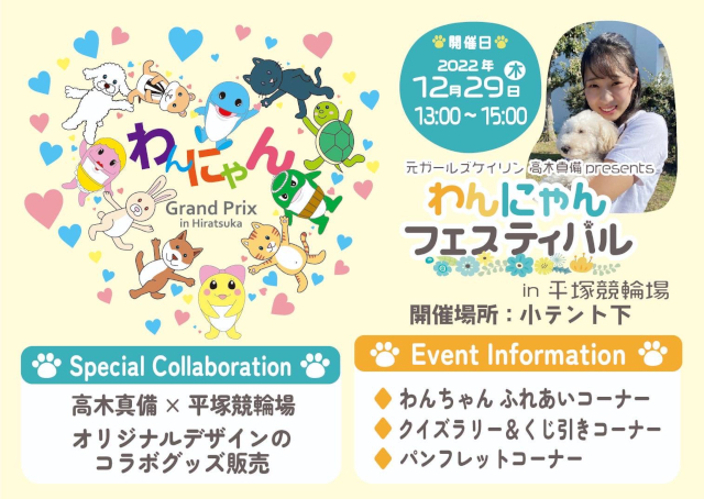 そしてそして、話は戻りますが、12月29日のガールズグランプリの日に、わんにゃんフェスティバルin平塚競輪場を開催いたします!
