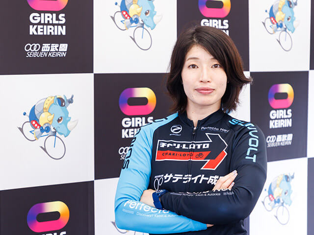 30歳から自転車競技を始めて、35歳で養成所入所。36歳でプロデビュー。デビュー後は積極的に動くも大敗が続いたが、選手を続けるために動きたい気持ちを抑えてからは決勝進出も増えてきた。娘も自転車競技をしていて親子でガールズレーサーが夢。