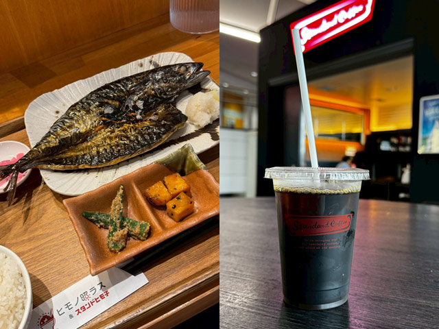 昼食は“北海道に行く”という気持ちが先走り、とろサバ定食をチョイス。脂がのっていて絶品でした。食後は3人でコーヒーを飲み、出発までの時間を過ごしました。