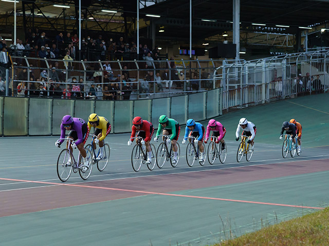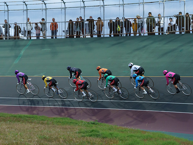 それだけに効果は絶大で、しかも舞台は短走路の小田原バンク。調子もよさそうだった九州勢に見事なリレーを決められると、いかにデキがよくても、他のラインや選手はなかなか立ち向かえません。そんななかでも「なんとかしてやろう」という意気込みを感じたのが、間隙をつき最内を抜けて前に迫った、松坂選手の走り。結果は7着とふるいませんでしたが、単騎ながら意地をみせた走りだったと思います。