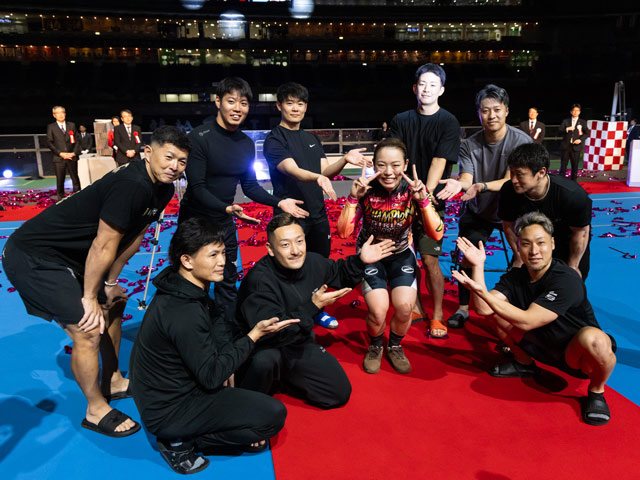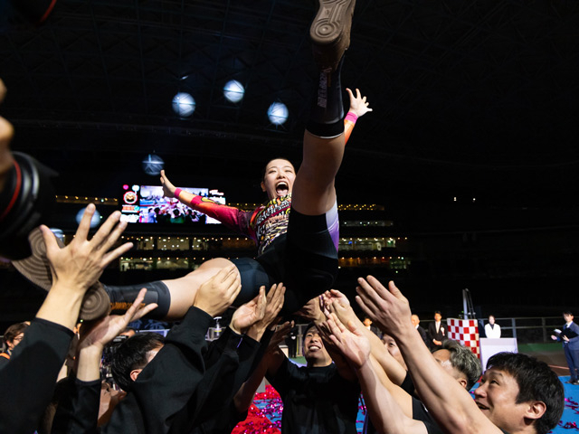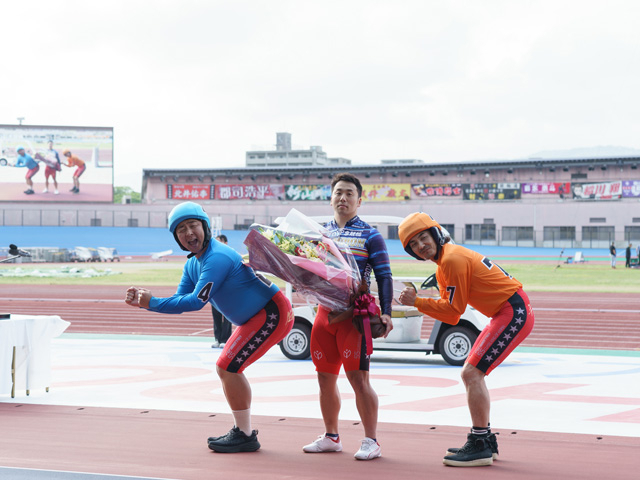 23年グランプリ女王が今年のグランプリ切符を掴むには、この競輪祭を優勝するしかなかった佐藤水菜。日本史上初となる世界選手権女子ケイリンでの金メダルを引っ提げて凱旋した"世界のサトミナ"は、圧巻の強さで完全優勝を挙げた。表彰式の後は郡司浩平、北井佑季ら屈強な"神奈川GI戦士"たちから胴上げ。記念撮影でも"南関のヒロイン"がはじける笑顔を見せた。(編集Y)