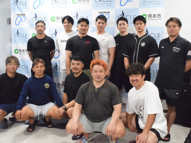 2024年は8年ぶりに熊本競輪場でレースが再開された。その中で、最初のGIII、久々の地元グレードレースを前に熊本勢が揃っての集合写真。久々の地元の賑わいを前にして良い表情であると同時にその期待に適度な緊張感も感じられる…?(編集K・T)
