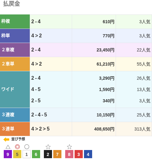 3連単は④-②-⑤で408,650円という配当で、313番人気の組み合わせ