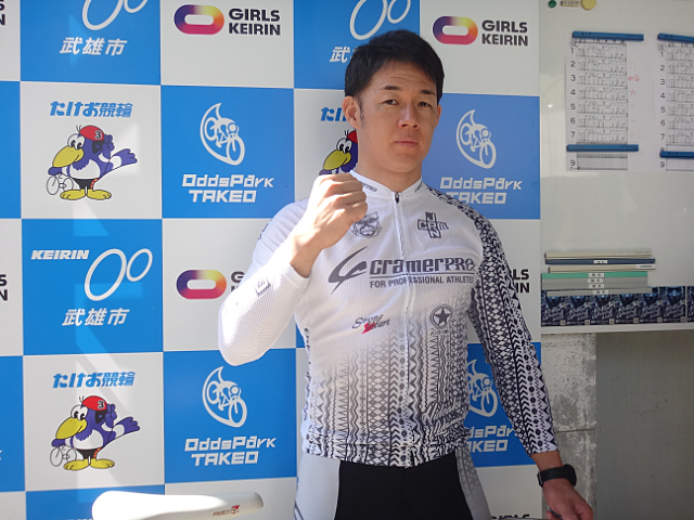 岐阜記念のあとにウエートトレーニングをみっちりやったら(左足を)肉離れしてしまった。8日ぐらい治療して練習を再回したら痛みは無いけど違和感がまだ残っている。それでも自転車に乗って1週間は乗ってきた。ここはゴチャ付く場合も想定して自力自在、とコメントします。松戸記念あたりから「自在」を付けているんです。