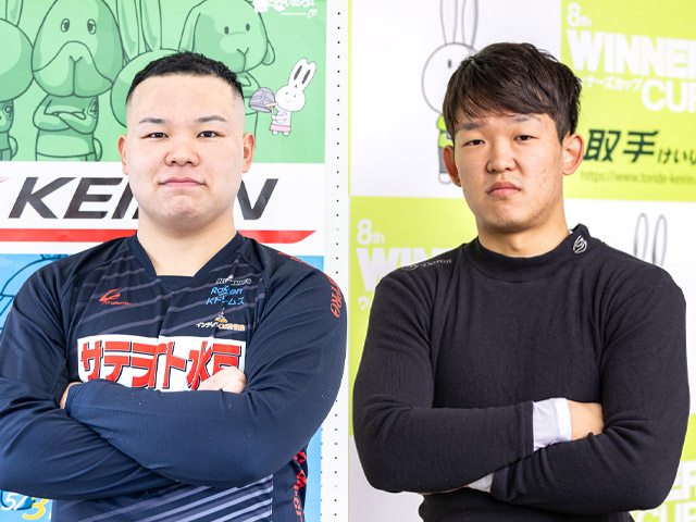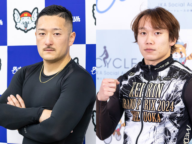 玉野競輪10R・S級準決勝に出走する吉田有希(左)と晝田宗一郎(撮影:北山宏一)