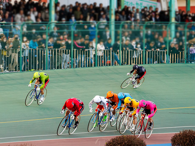 逃げた小松崎大地(8番車)は後退、和田健太郎(9番車)の落車アクシデントを避けた単騎の河端朋之(6番車)や、捲り不発だった犬伏湧也(2番車)も懸命にゴールに向かう…まさに激闘、熱戦といった言葉がぴったりの決勝戦。この1枚だけでも熾烈さが伝わってくる。