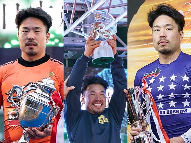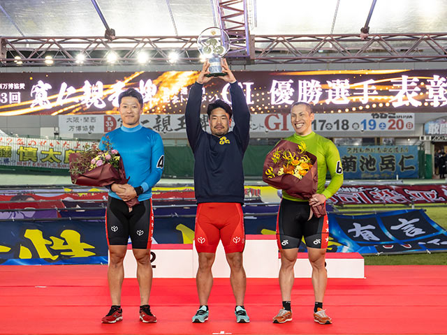 決勝を制した古性優作は初日の理事長杯、2日目のローズカップ(優秀戦)、3日目の準決勝、そして最終日の決勝全てで1着を決める“完全V”を果たし、大暴れした大会だった。理事長杯、ローズカップではどことなく引き締まっていた表情も、最終日(写真真ん中)にはやわらぎ、笑顔が見られた。