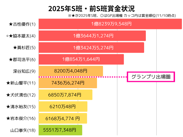 最後に、S班以外の賞金上位選手を見ていきたい。