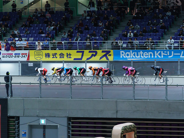 誘導以下、9松本-2荒井、5吉田-6阿部、1古性-4山田久、3松井-8渡部、7山田英で周回。まず松井が上昇開始して赤板過ぎに松本を抑える。すぐさま古性が松井をかわすと、さらに吉田が踏んで打鐘で先頭に立つ。入れ替わりが激しい中、松本が仕掛けて、最終HSで吉田を叩いて主導権取りに出る。3番手に吉田、5番手に古性で最終HSを通過。最終2コーナーから古性は捲りを打つが、最終BS前から3番手の吉田も仕掛けていく。松本マークの荒井は吉田をけん制すると、そのまま前に踏んで、最終4コーナーで抜け出していく。吉田マークの阿部は、荒井を追う形で直線に向くと、ゴール前で差し切り優勝のゴール。2着に荒井、外を捲り追い込んだ松井が3着に入線した。