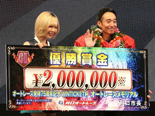 大観衆が固唾をのんで決戦の瞬間を見つめる中、優勝戦がスタート。0mから祐定がハイペースで逃げる中、5周回目に2番手に上がった永井が、6周回目に祐定をとらえて先頭に立つ。青山が猛追するが、永井が振り切って優勝。G2は22年飯塚のオーバールチャンピオンカップ以来となる通算15回目の優勝、グレードレースも23年川口のG1開設記念グランプリレース以来の優勝を決め、詰めかけたファンから表彰式の最後まで大きな声援が送られていた。